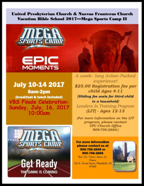 The 2017 Vacation Bible School will be held at United from July 10-14th. A special recognition program will be held during our worship service on Sunday, July 16. Please check back here for more information, but please save those dates!